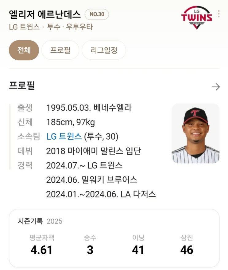 [LG 트윈스] 엘리에이저 에르난데스에 대한 작년 입국전 기대치와 지금의 현실