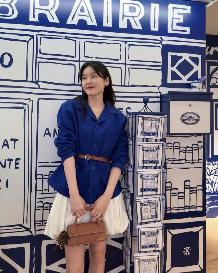 파리의 한 감성 카페 앞, 심소영의 데일리룩이 시선을 끈다. 블루 컬러 재킷과 화이트 미니스커트의 조합은...