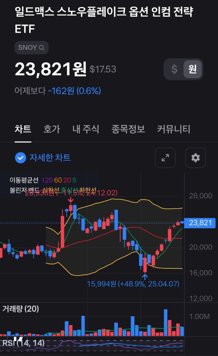 스노우플레이크 토스에 조회하다 월배당으로 스노우플레이크 옵션 ETF 봄 근데 65% 수익은 못따라가도 ...