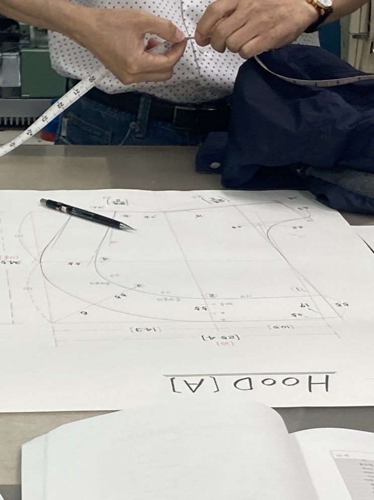 후드 패턴의 핵심을 짚다 필드 재킷 몸판과 소매작업이 끝난 후 후드 패턴을 뜬다. “필드 재킷은 기본적으...