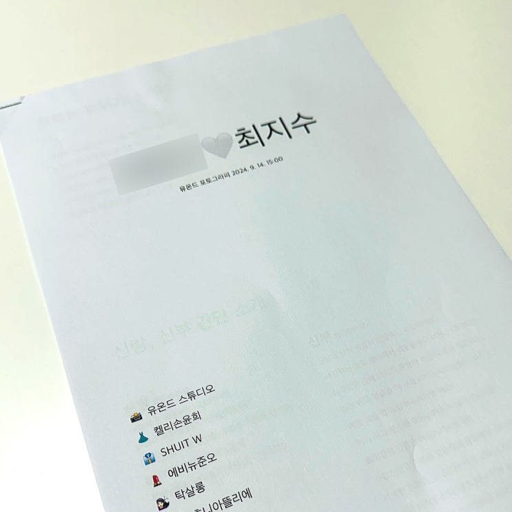 안녕하세용 지두에요! 지난주에 유온드 포토그라피에서 웨딩촬영을 하고왔는데 촬영 시안을 미리 준비하는 ...