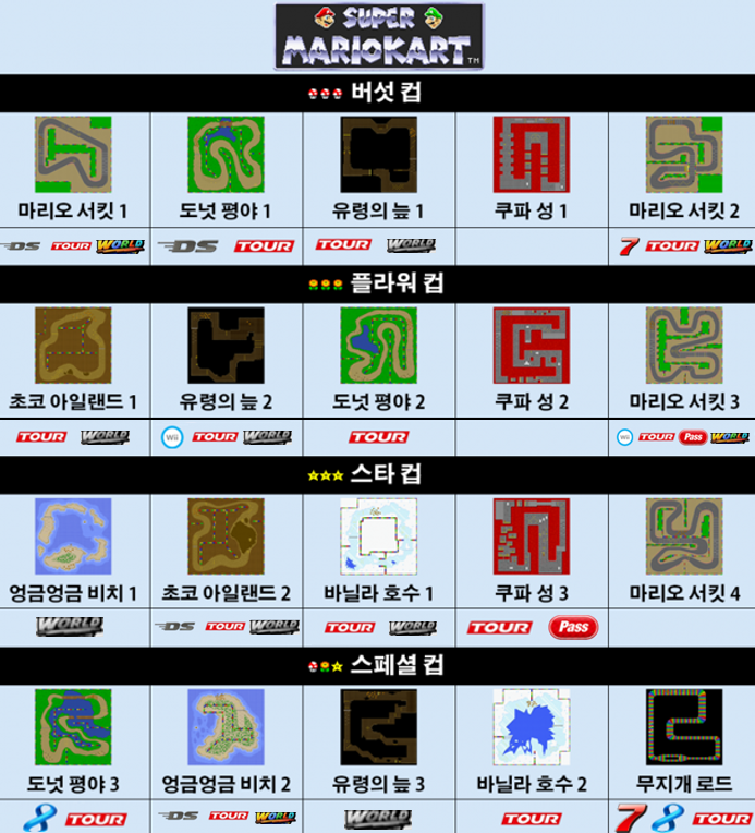 ※ 표기하진 않았지만, 본작의 모든 레이스 코스들은 마리오 카트 어드밴스에서 플레이할 수 있습니다. ※ ...