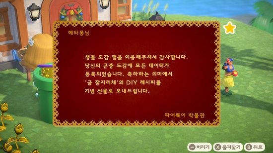 [모동숲_일지] 모동숲 금잠자리채 레시피 획득!!