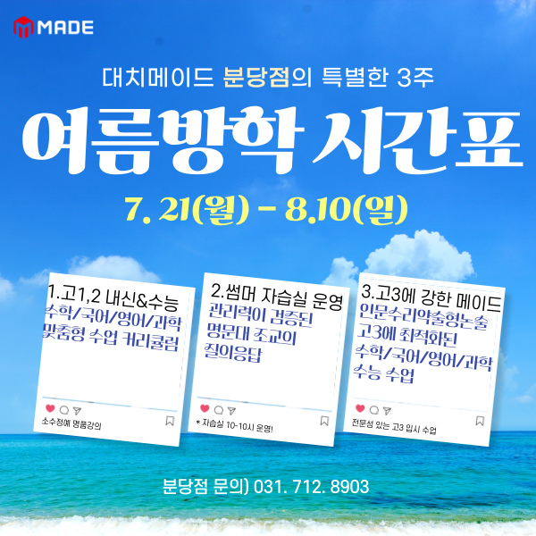 내년이면 고등학교에 들어가야 하고, 실질적으로 방학을 보내는 마지막 시기가 지금이잖아요. 대비를 잘해...
