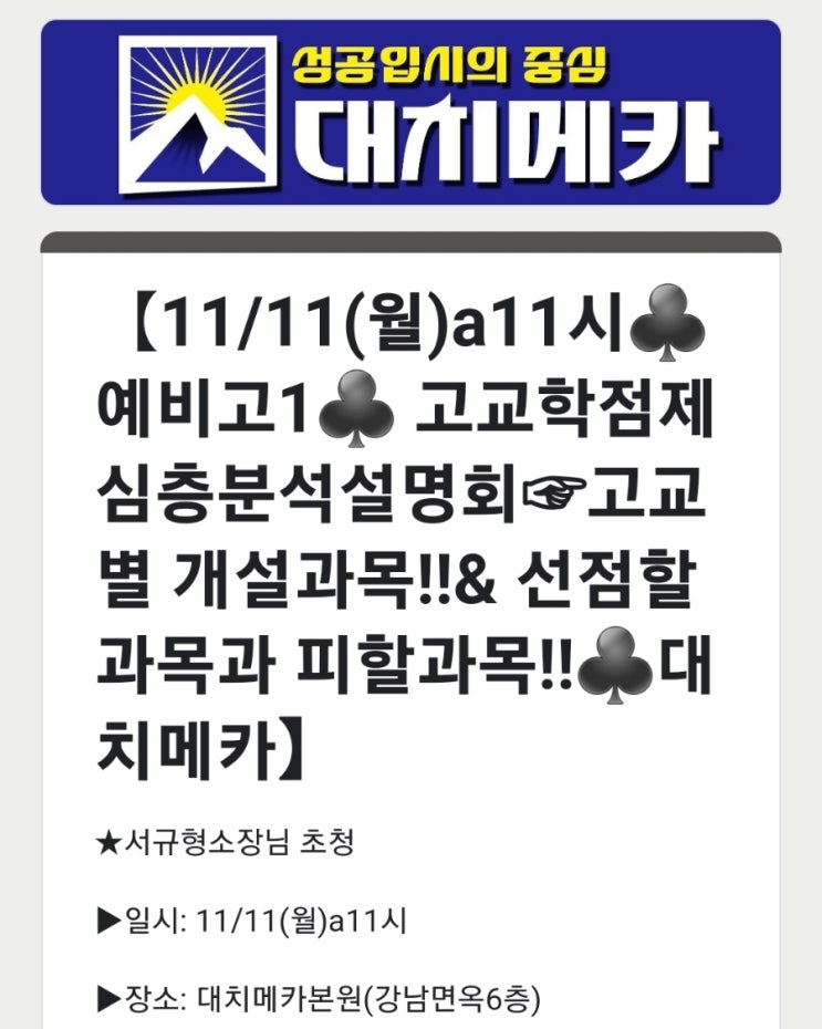 【11/11(월)11시(예비고1) ♣설명회&시간표♣대치메카】 【①★고교학점제 심층분석 /변화된 내신평가...