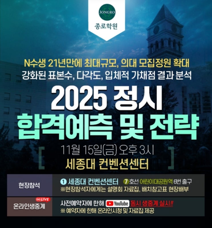 [종로학원] 2025 정시 합격점수 예측 및 전략 설명회