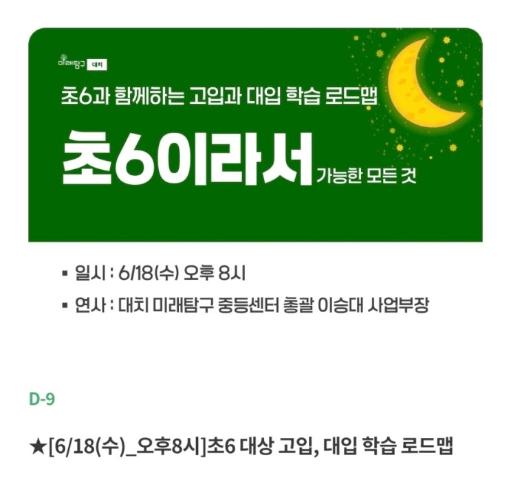 【대치 미래탐구 중등센터】 초6 대상 고입, 대입 학습 로드맵 설명회