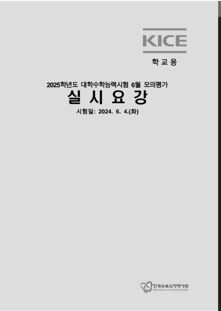 2025학년도 대학수학능력시험 2024년 6월 4일 모의고사평가 실시요강