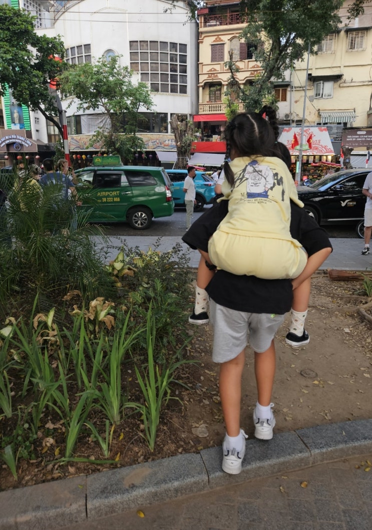 [디카시] - 찍고쓰고 하루가 가득 찬 날 동생은 지치고 힘든 날 오빠는 등을 내어 준 날 엄마는 하루가 가...