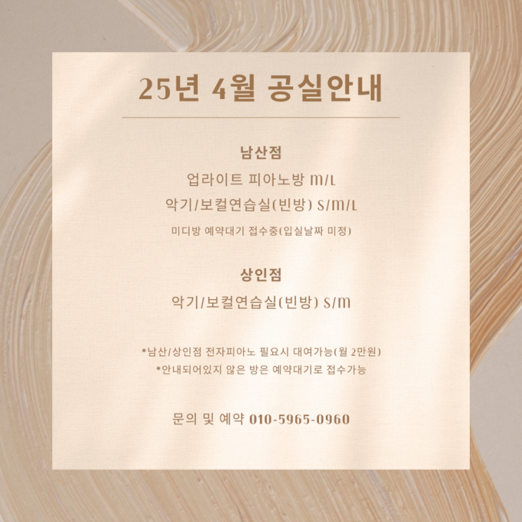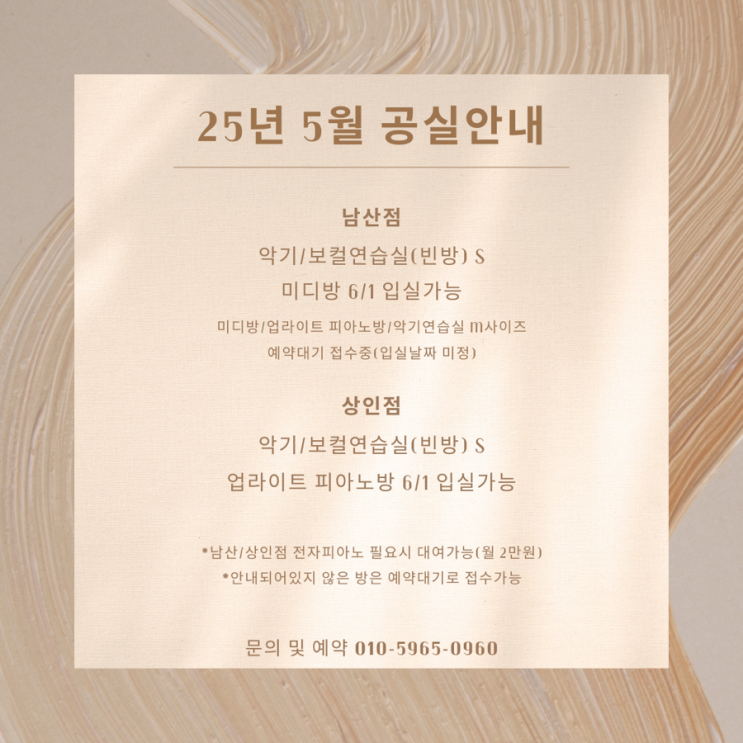 [대구 월대여 음악연습실/상인동 연습실] 25년 5월 공실안내