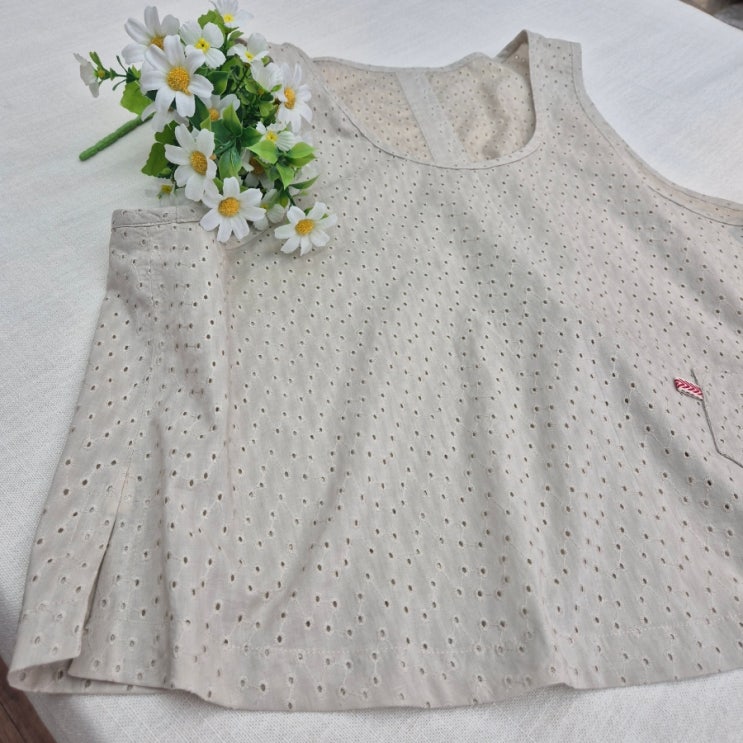 중년여성 네추럴스타일 펀칭자수 핸드메이드 조끼