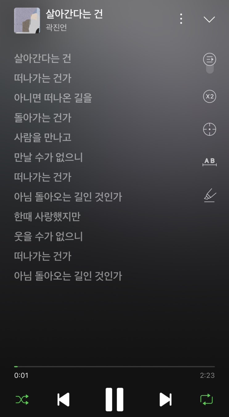 https://youtu.be/0KY8zKwRlHY?si=K7ivxKjA5xu2HM7I 곽진언 - 살아간다는 건 살아간다는...