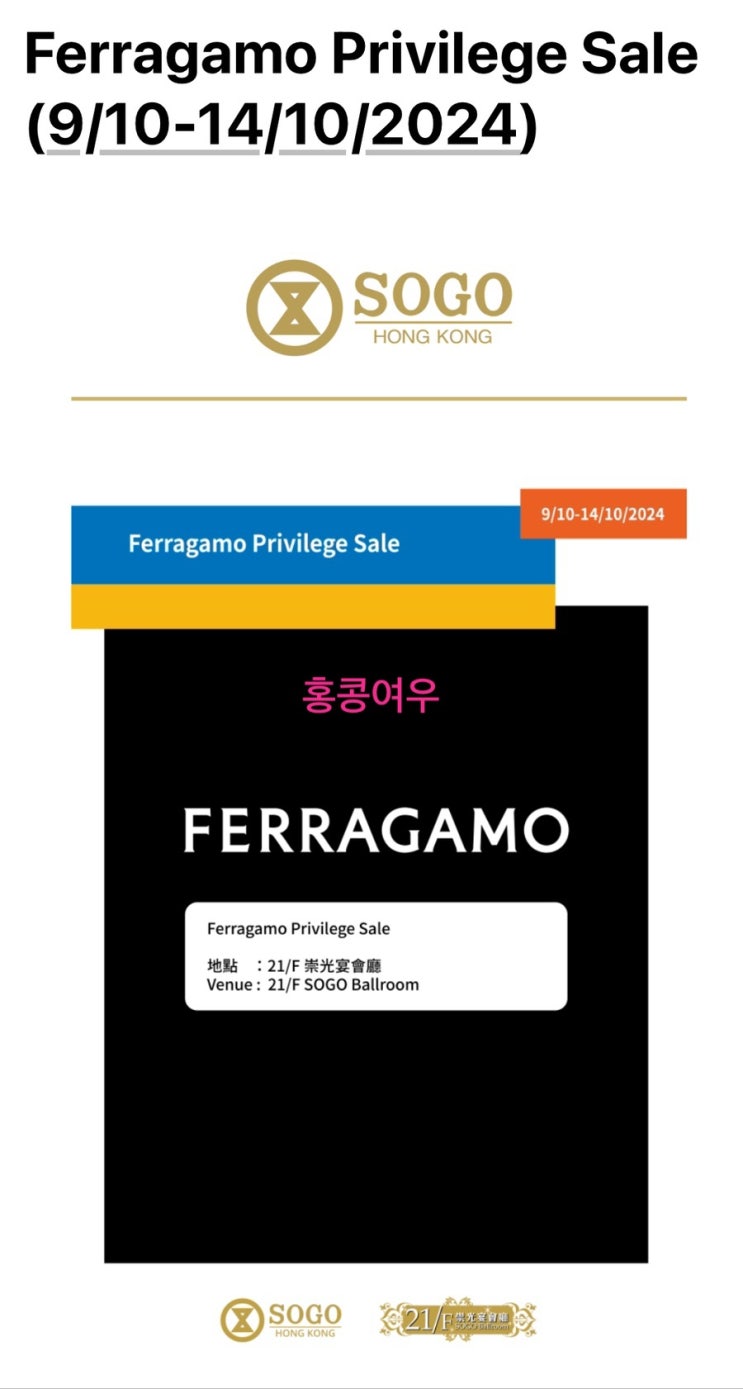 페레가모 패밀리전 - 코즈웨이 베이 소고 백화점 21층 바자르 세일 - 코즈웨이 베이 타임 스퀘어