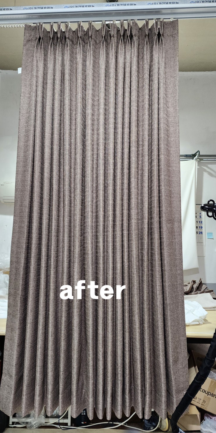 수선을 하면서 형상기억커튼 가공 의뢰는 처음이어서 가격책정에 조금 오류가 있었습니다. 왜냐하면 세로기...