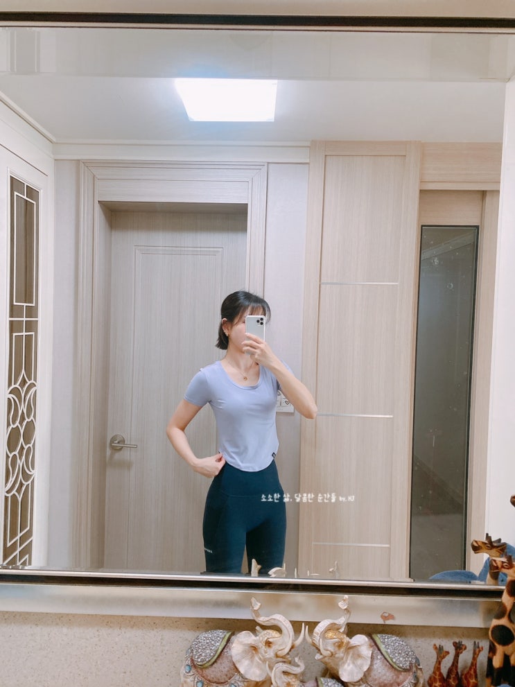 [내돈내산 운동복리뷰] 젝시믹스 <젤리라이트 라운드 크롭탑> 시머블루밍, 루핀바이올렛 / S사이즈, 착샷