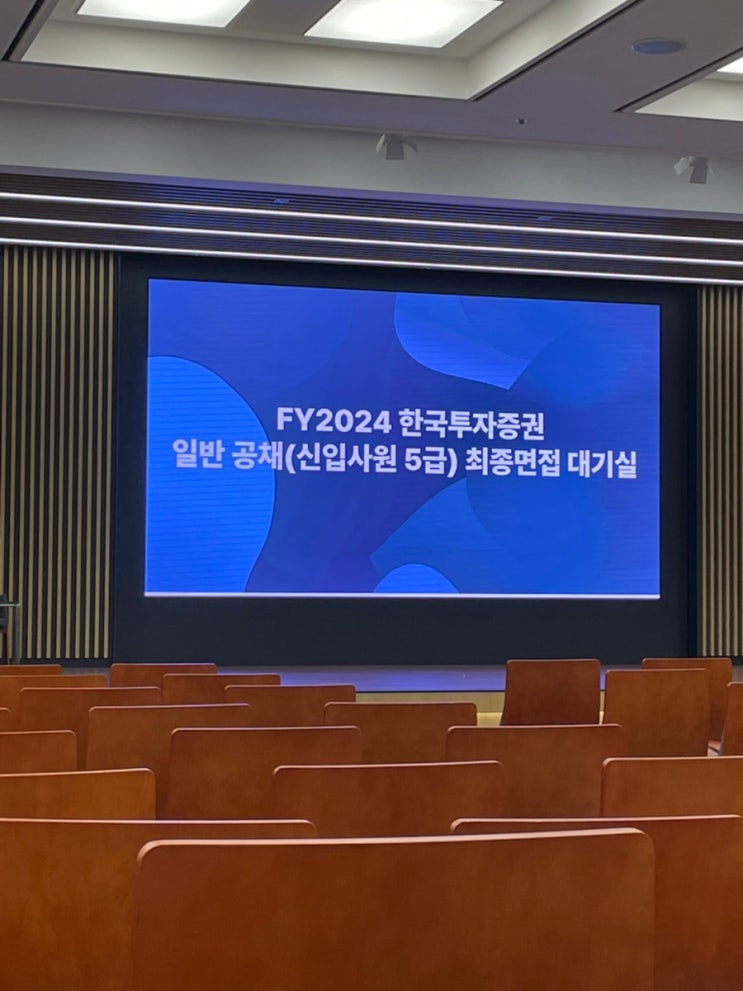 처음으로 정장을 입고 정장구두를 신고 한국투자증권 본사로 갔다 면접 들어가기 전에 대기실에서 기다린다...
