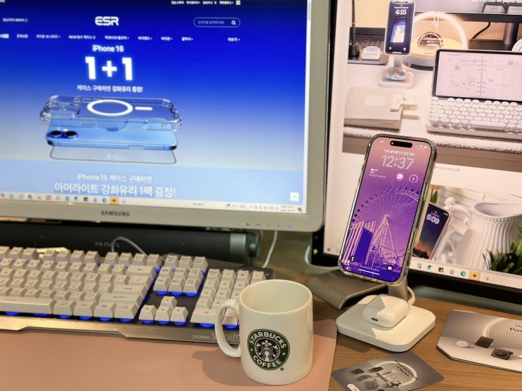 아이폰16 프로를 구입하면서 에어팟과 함께 충전하는 ESR 맥세이프 2in1충전기 & 케이스를 사용 중...