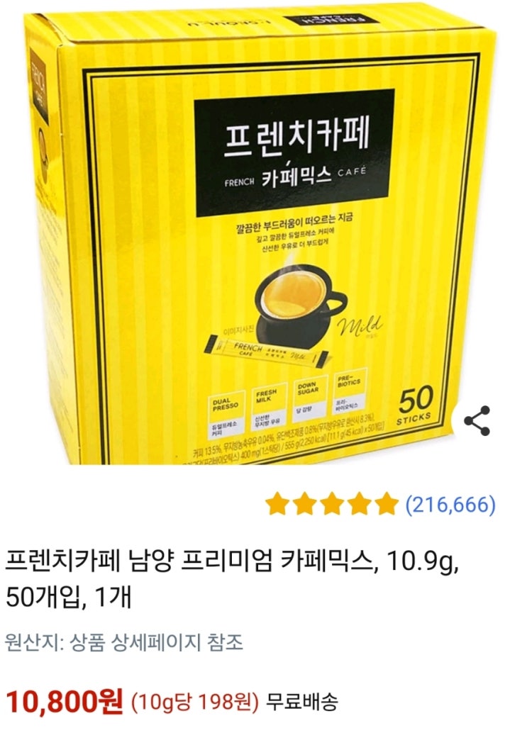 구매평이 좋은 남양프렌치카페커피믹스 품절 임박이라네요 입니다. 다양한 가격대 제품들이 있으니 남양프렌치카페커피믹스 제품 상세정보 및 후기 꼼꼼하게 살펴보시고 구매하시기 바랍니