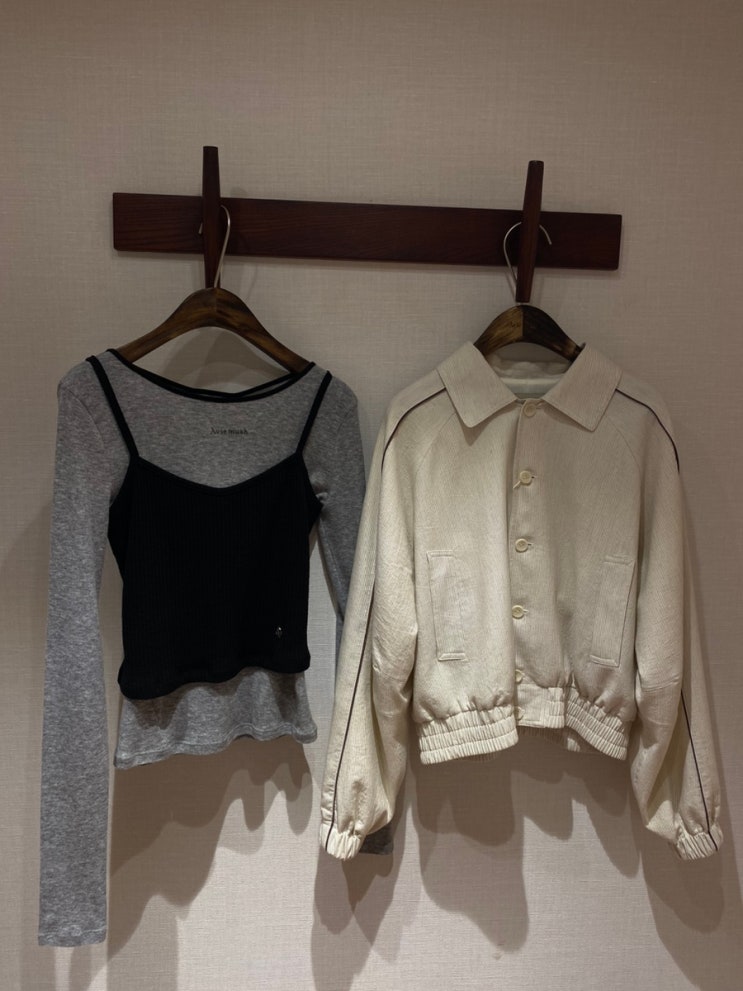 아비에무아 서울숲/합정 쇼룸 방문 (레이어드 저지탑 그레이 블루/스트라이프 파이핑 셔츠 블루종 (브라운)...