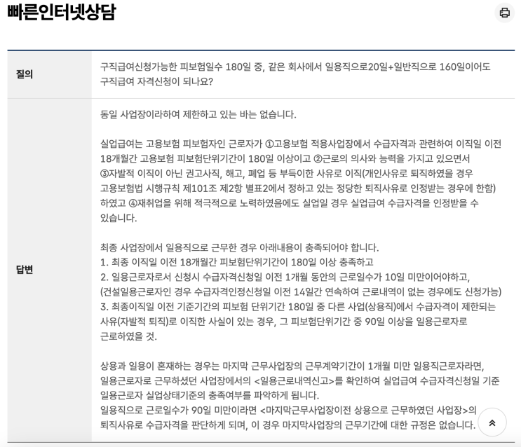자발적 퇴사 이후 일용직으로 2~3일 근무했다면 실업급여 수급이 가능할까요? (일용직 근로자의 실업급여 수급요건)