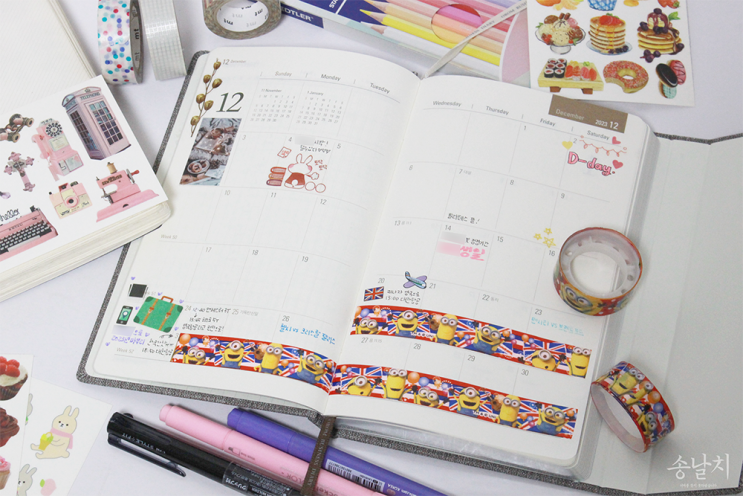 2024 다이어리 리뷰를 위해 급히 12월 다꾸를 미리 해봤는데 처참히 망해버렸고.....? 마스킹테이프도 아니...