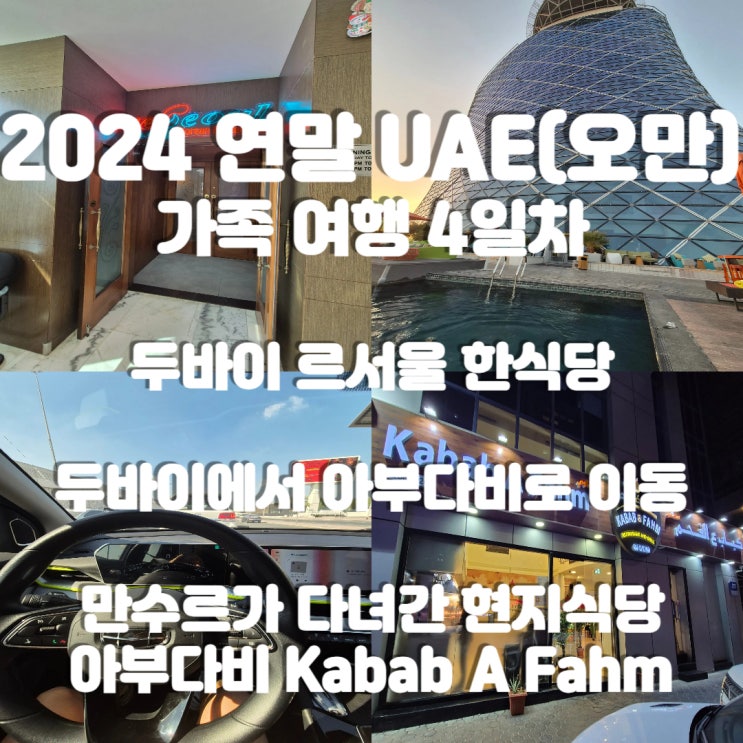 24연말 UAE(오만) 가족 여행 4일차 두바이 르서울 한식당 만수르가 다녀간 현지식 양갈비 아부다비 Kabab A Fahm ft 두바이에서 아부다비로