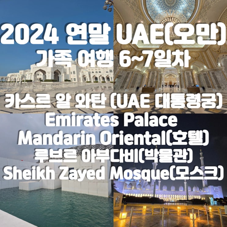 24연말 UAE(오만) 가족 여행 6~7일차 UAE 대통령궁 만다린 오리엔탈 호텔(금 커피) 아부다비 한식당 한국슈퍼 아부다비 루브르 셰이크 자이드 모스크