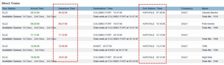 ■ 엘라에서 캔디 : 바둘라발 기차(0830분발) 엘라 0921분 출발 ~ 캔디 1553분 도착 (1등석 예약, 3,650루...