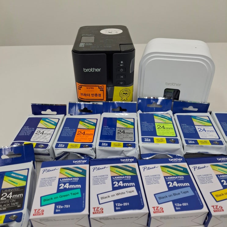 브라더 라벨프린터 PT-P900W, PT-P910BT 사용가능한 브라더 라벨테이프 24mm 모든 라벨테이프 한번에 보기