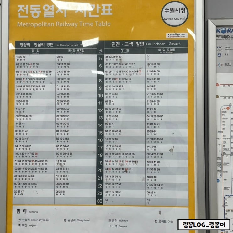 수원시청역 수인분당선 전철시간표 급행 첫차 막차 노선도 요금
