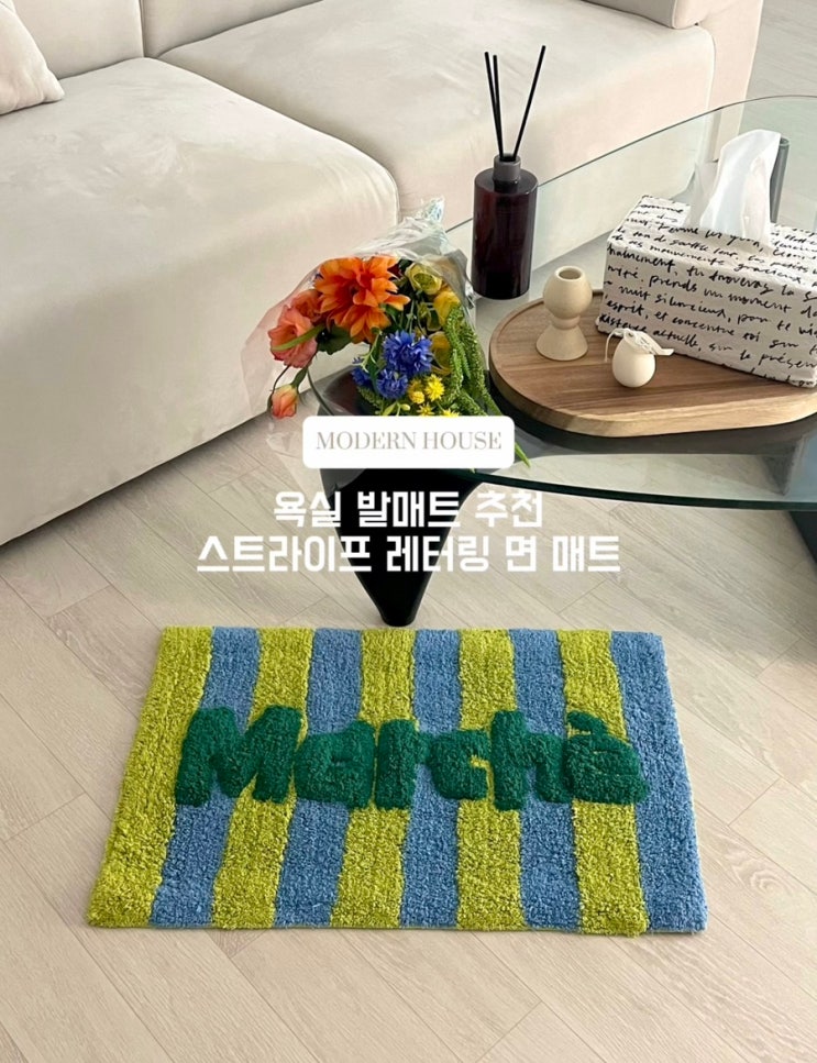욕실 발매트 추천 | 모던하우스 스트라이프 레터링 면매트