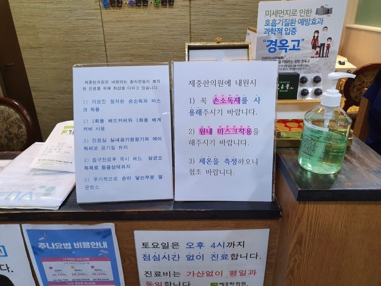 1) 의료진 철저한 손소독과 마스크(KF94) 착용 2) 1회용 베드커버와 1회용 베게커버 사용 제중한의원은 ...