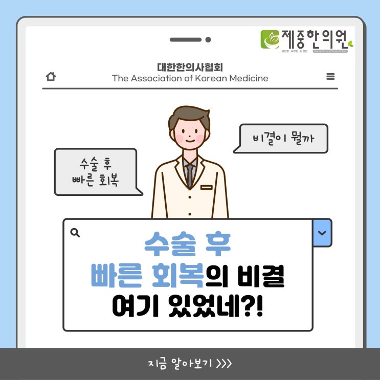 수술 후 빠른 회복의 비결, 한의학 치료에 있었다?! 최근 몇 년간 수술 건수가 매년 증가하고 있다는 사실,...