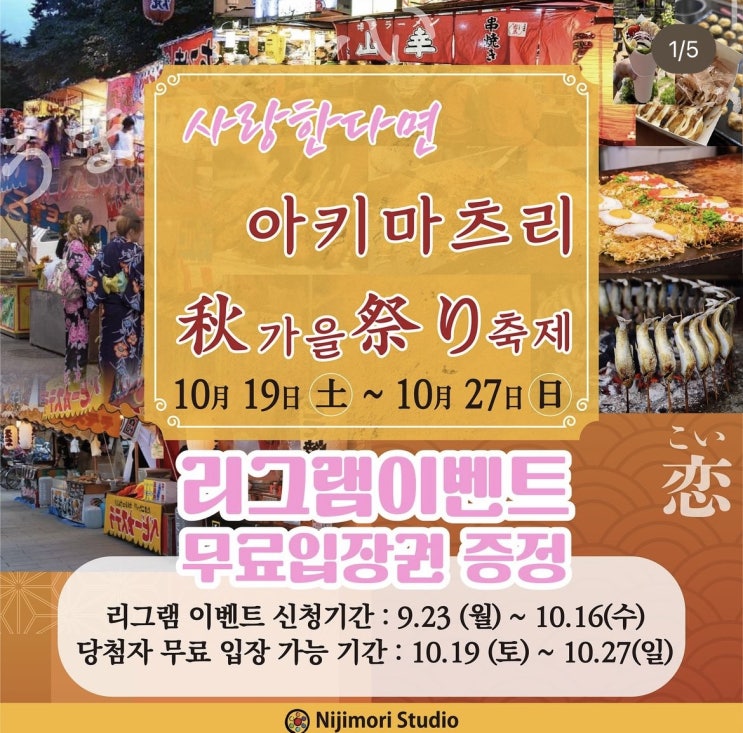 다음주부터 #니지모리스튜디오 축제 기간 !! 가까운 일본으로 다들 출발 !!!!#니지모리스튜디오#가을축제 ...