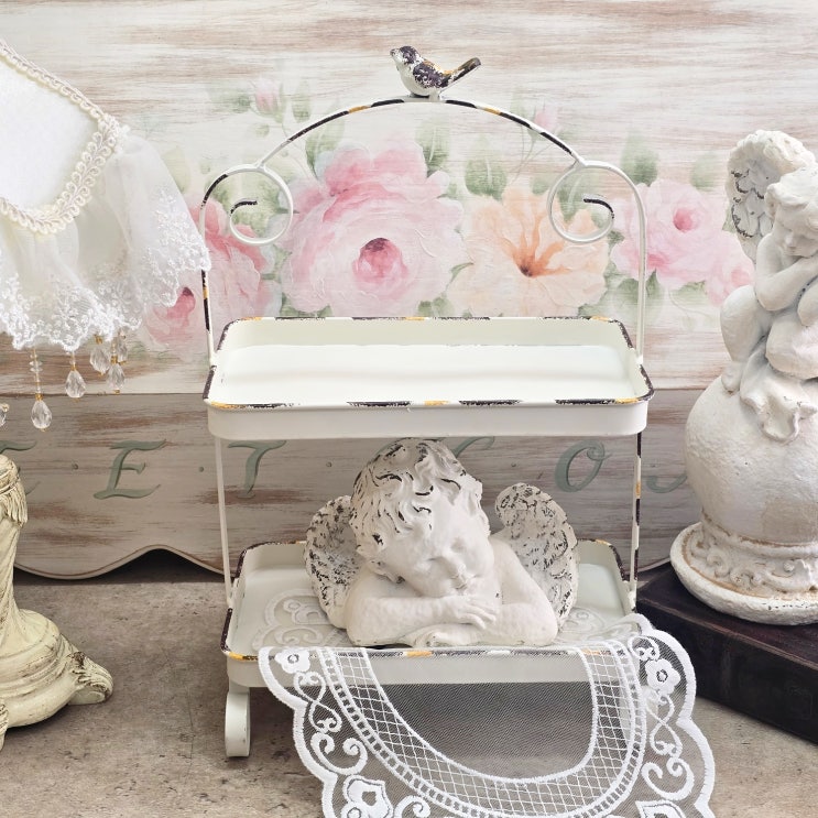 버드 2단 철제 선반 빈티지한 멋을 살린 2단 철제 트레이 입니다. 상단에는 귀여운 새 모양 장식이 포인트...