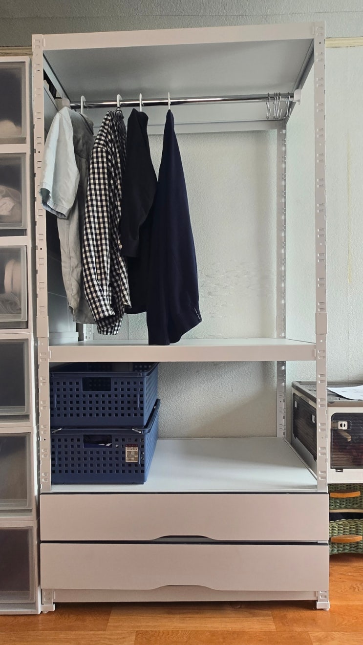 옥탑방 원룸 필수템_공간이 넓어지는 기적 랙셈블 3세대 조립식 철제선반 (행거형 3단 1행거) 사용후기