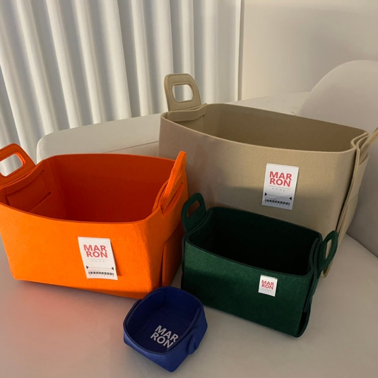 [마롱즈] 펠트 수납 바구니, 펠트 트레이 : S,M,L 사이즈 비교, 수납함 추천