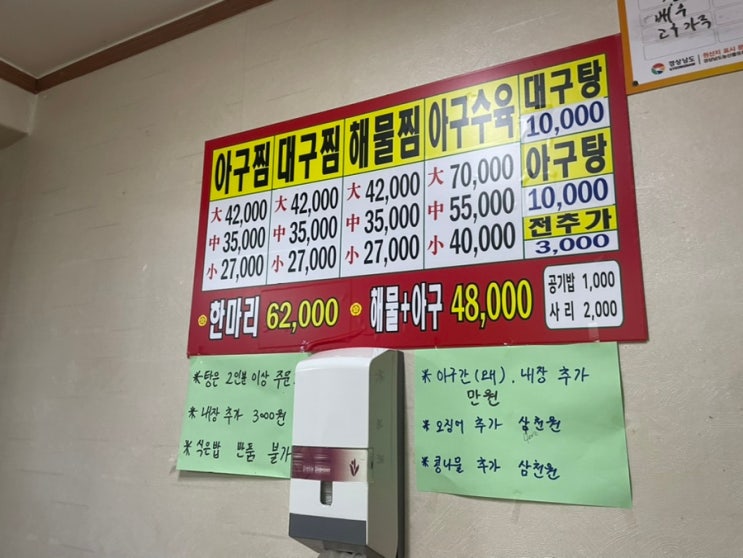 물꽁 아구찜 •영업시간 매일11:00-21:00 •055 336 1937 •배달가능 •단체석 •가게앞 주차장 넓음 어방...