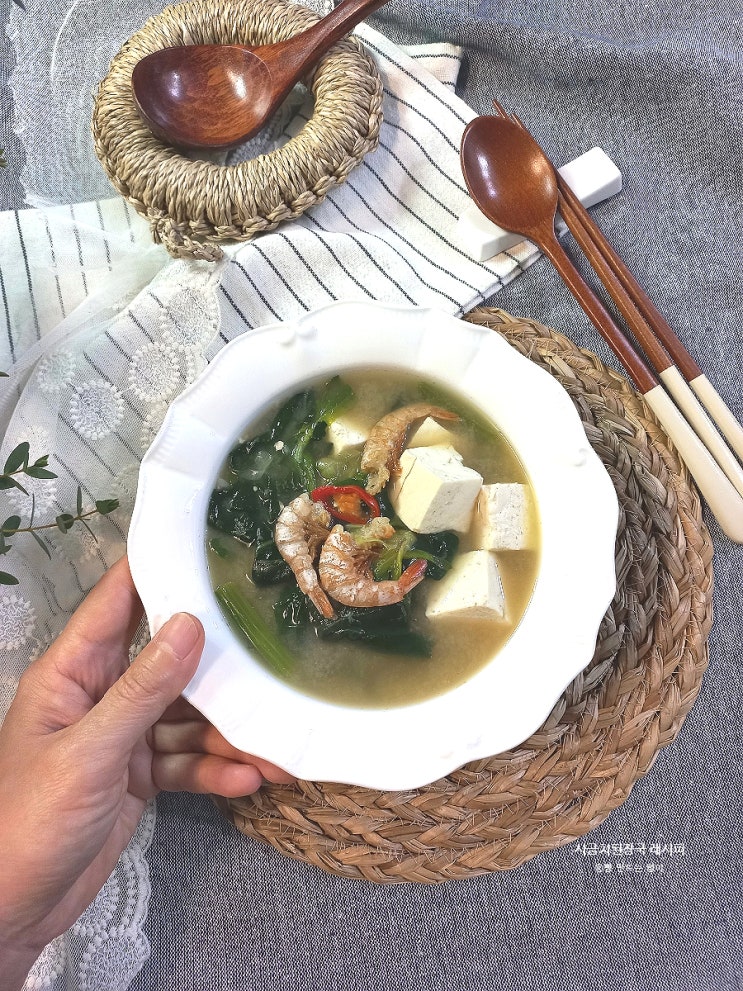 건새우 시금치 된장국 만드는 법 두부 된장국 레시피 시금치국 끓이는법