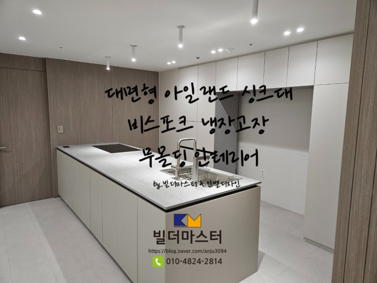 <빌더마스터> 대면형 아일랜드 싱크대 주방, 비스포크 냉장고 키큰장, 무몰딩 인테리어, with 인벨런스 디자인