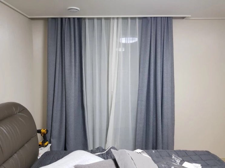커튼 후기▶ 호텔식 암막커튼 블루그레이 & 속커튼(린넨), 신혼집 침실 후기 ♥
