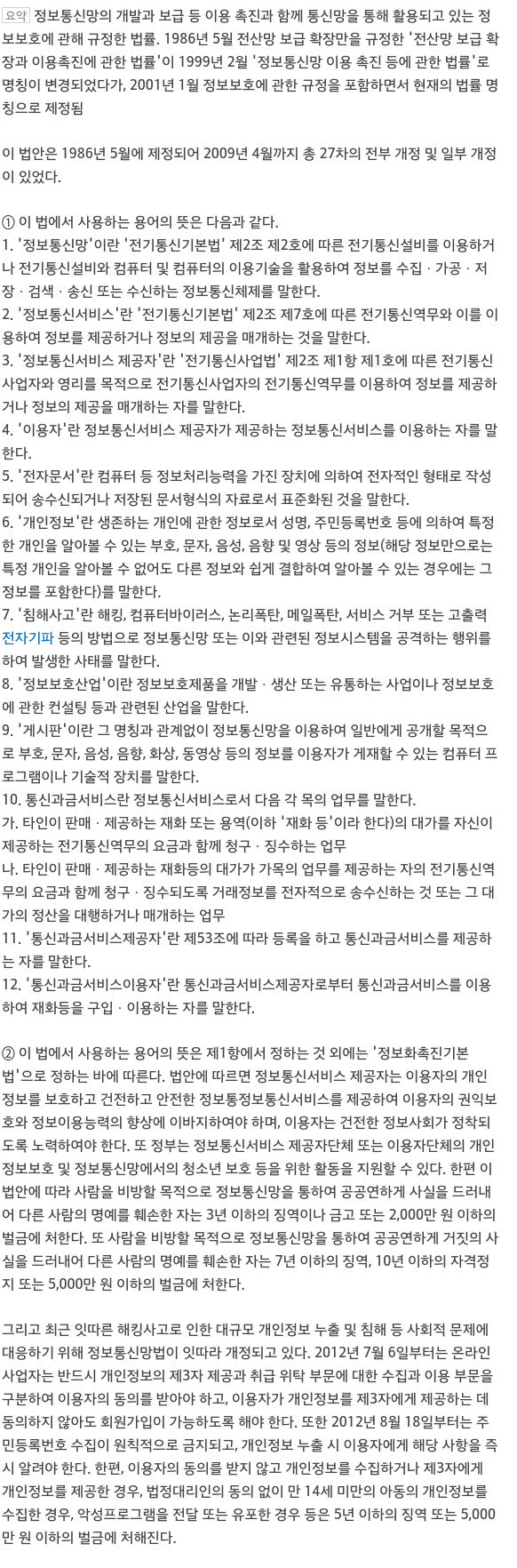 정보통신망 이용촉진 및 정보보호 등에 관한 법률