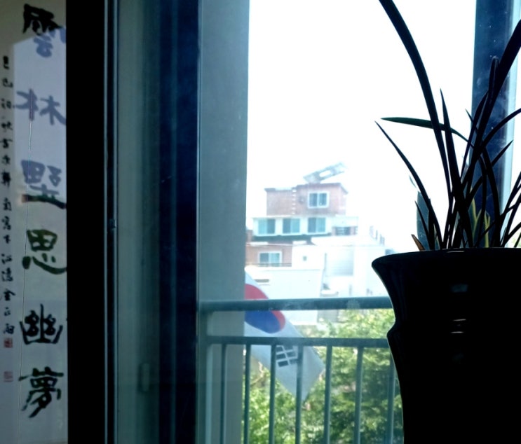 태양이 중천으로 올라오자 아파트 "#중앙정원"의 각종 정원수에 수직으로 빛을 내리 꼽는다. 두 ...