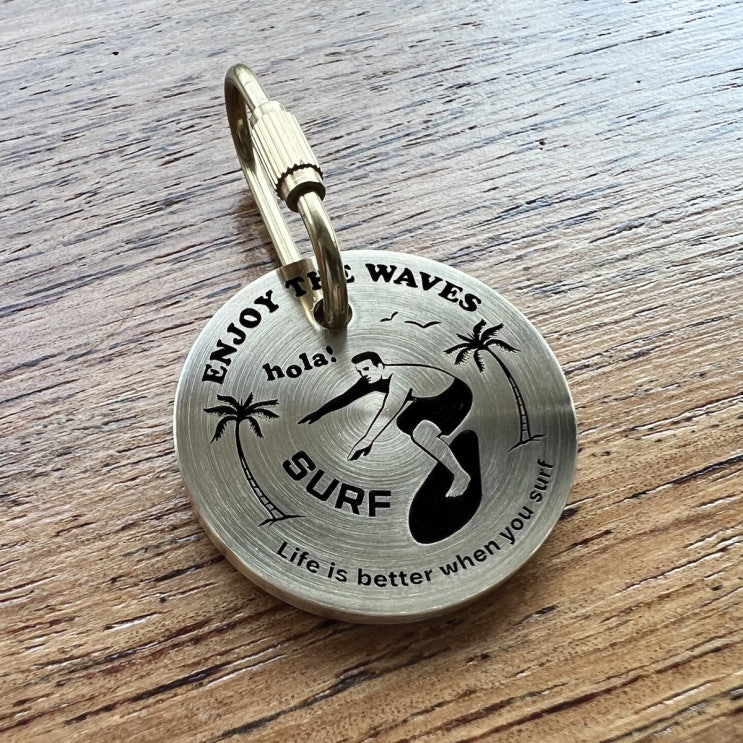 Hola! 파도를 즐기는 서핑 황동 코인 키링 이니셜 각인 제작!