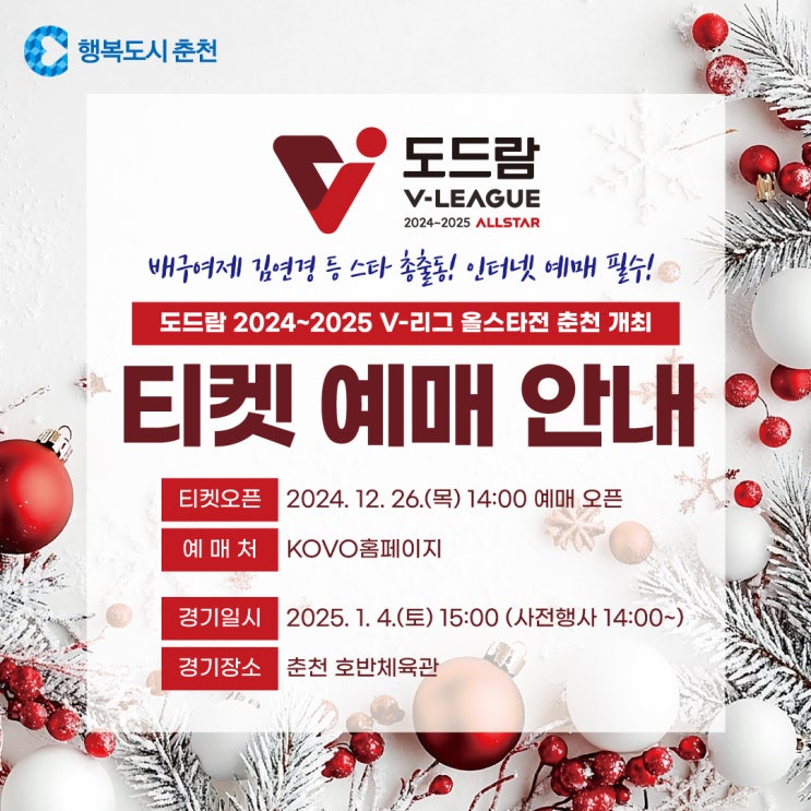 도드람 2024~2025 V-리그 올스타전 춘천 개최[예매 안내]