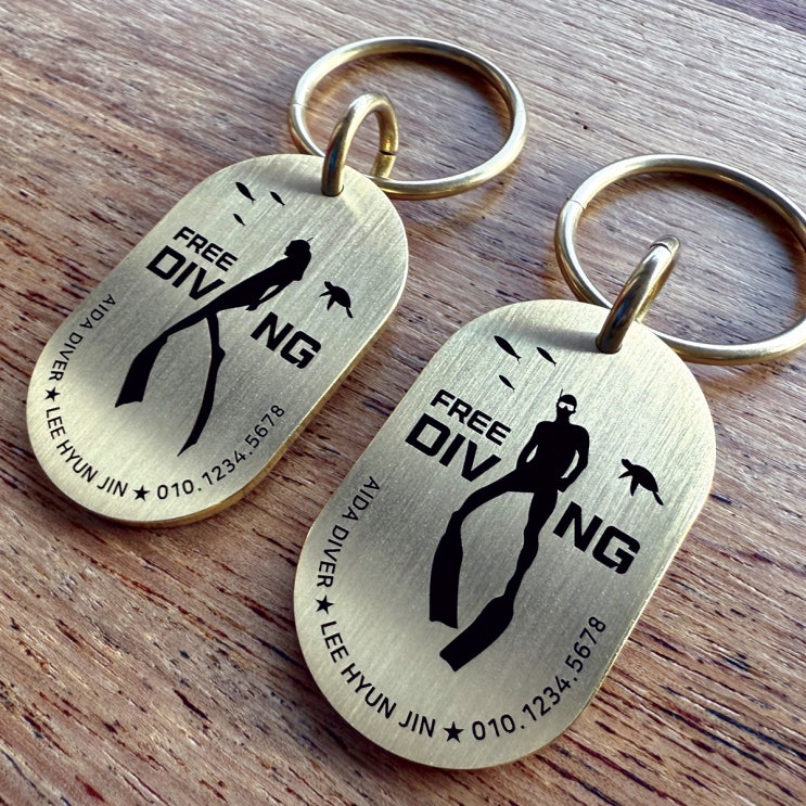 프리다이빙 황동 키링 펜던트 커스텀 레이저 이니셜 각인 열쇠고리