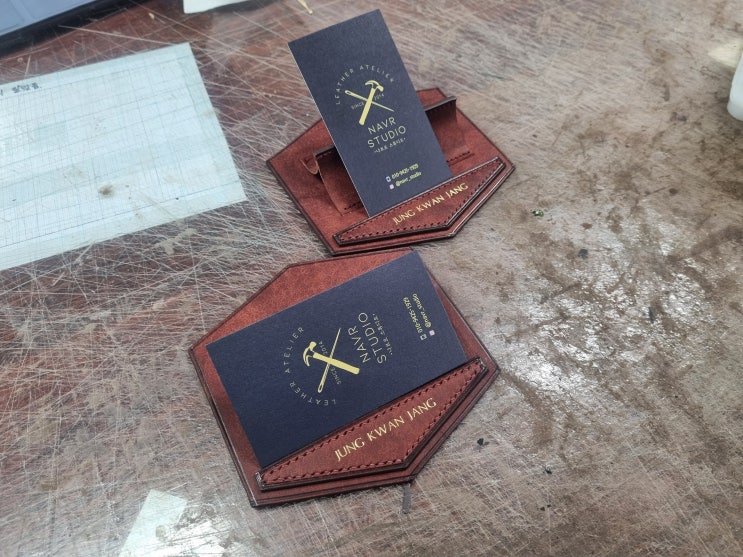 안녕하세요. 가죽 공방 나브르 스튜디오입니다. 오늘은 개업/승진/이직 선물로 추천드리는! 가죽 명함 거치...