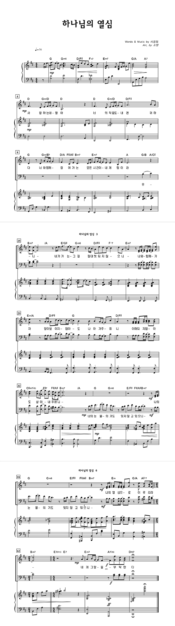 4부 성가 악보 / 사공정 / <하나님의 열심>Dkey