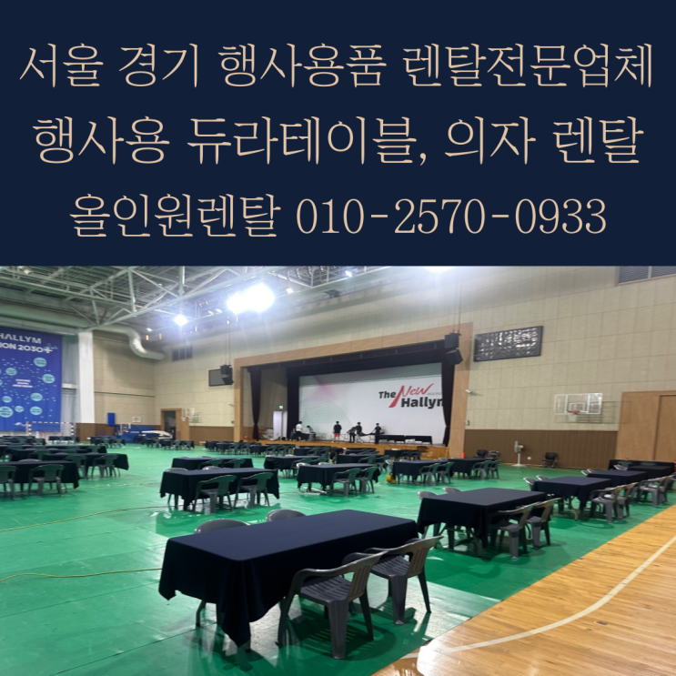 안녕하세요. 올인원렌탈입니당 :) 오늘은 실내, 야외에서 많이 사용되는 듀라테이블과 플라스틱의자 렌탈에...