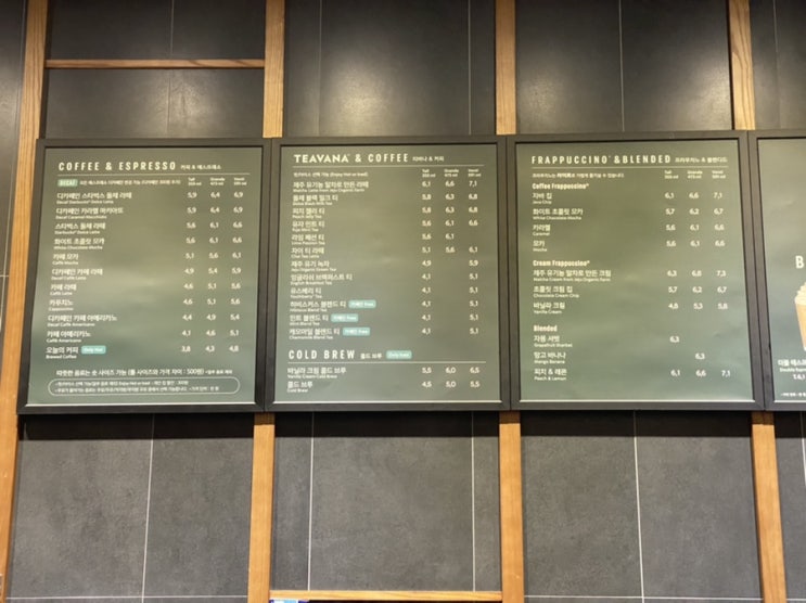[광주 카페] 지산동 스타벅스 DT 메뉴판